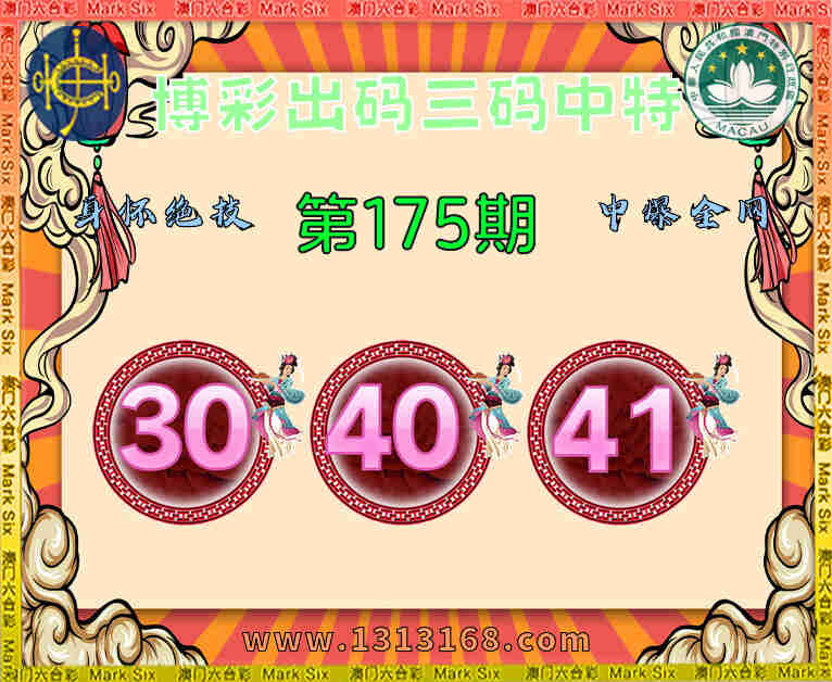 175期: ⛩️《博彩出码》 ⛩️三码中特⛩️【30.40.41】开:30