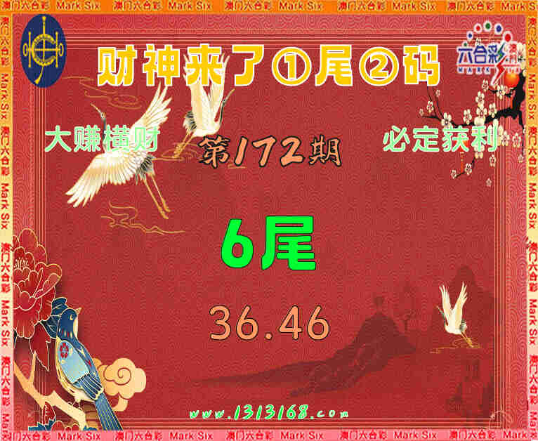 172期:【财神来了】 🥽①尾②码🥽【6尾主:36.46】开:36