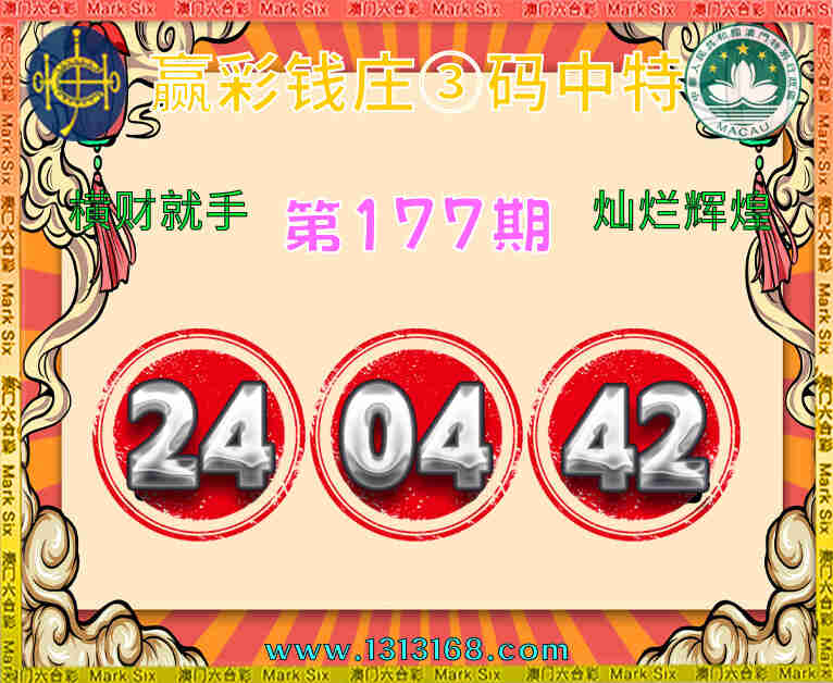 177期: 赢彩钱庄 🀄③码中特🀄【24.04.42】开:04