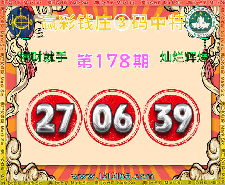 178期: 赢彩钱庄 🀄③码中特🀄【27.06.39】开:27