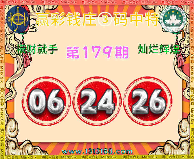 179期: 赢彩钱庄 🀄③码中特🀄【06.24.26】开:24