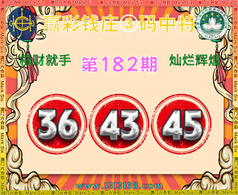 182期: 赢彩钱庄 🀄③码中特🀄【36.43.45】开:00准
