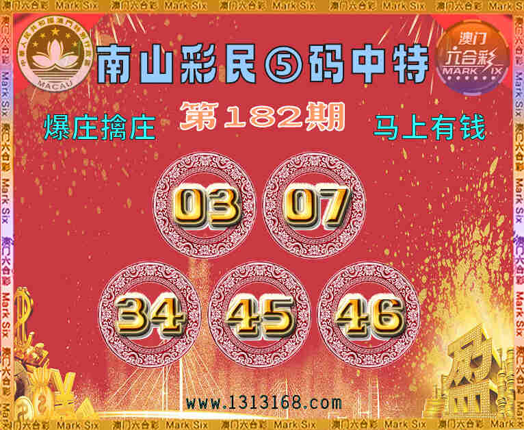 182期:『南山彩民』 🍙⑤码中特🍙【03.07.34.45.46】开:00准