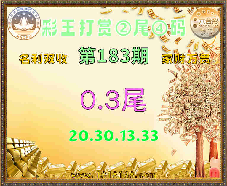 183期: 🍗『彩王打赏』 🍗②尾④码🍗【03尾主:20.30.13.33】开:33