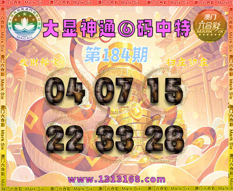184期: ⌚『大显神通』⑥码中特⌚【04.07.15.22.33.28】开:28