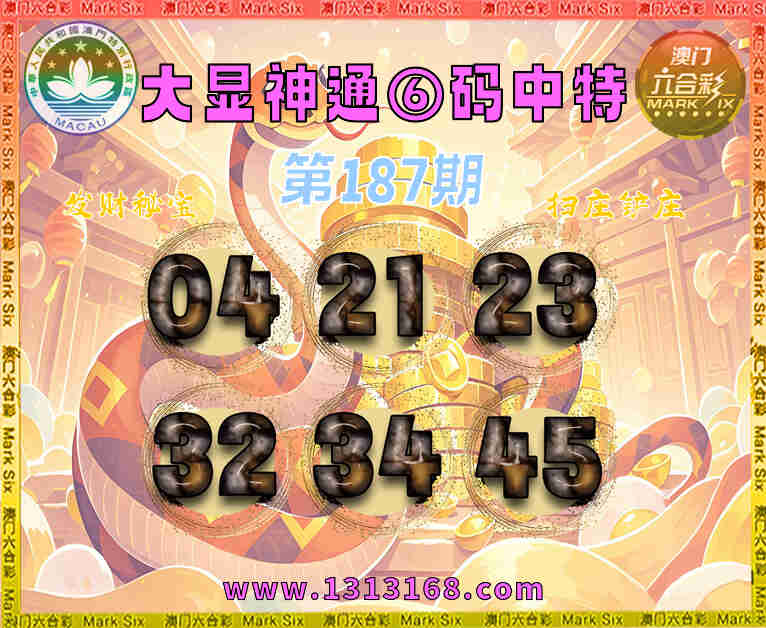 187期: ⌚『大显神通』⑥码中特⌚【04.21.23.32.34.45】开:45