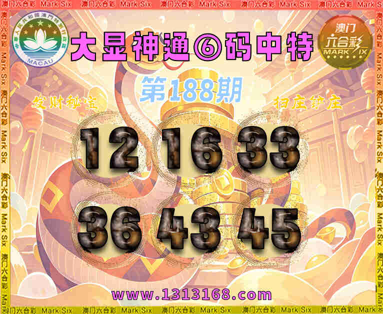 188期: ⌚『大显神通』⑥码中特⌚【12.16.33.36.43.45】开:00准