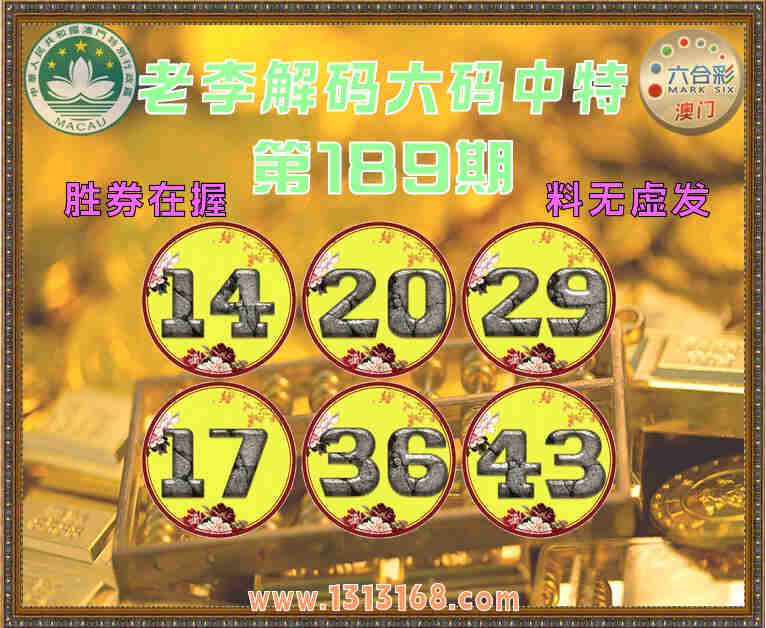 189期:『老李解码』 🎈六码中特🎈【14.20.29.17.36.43】开:17