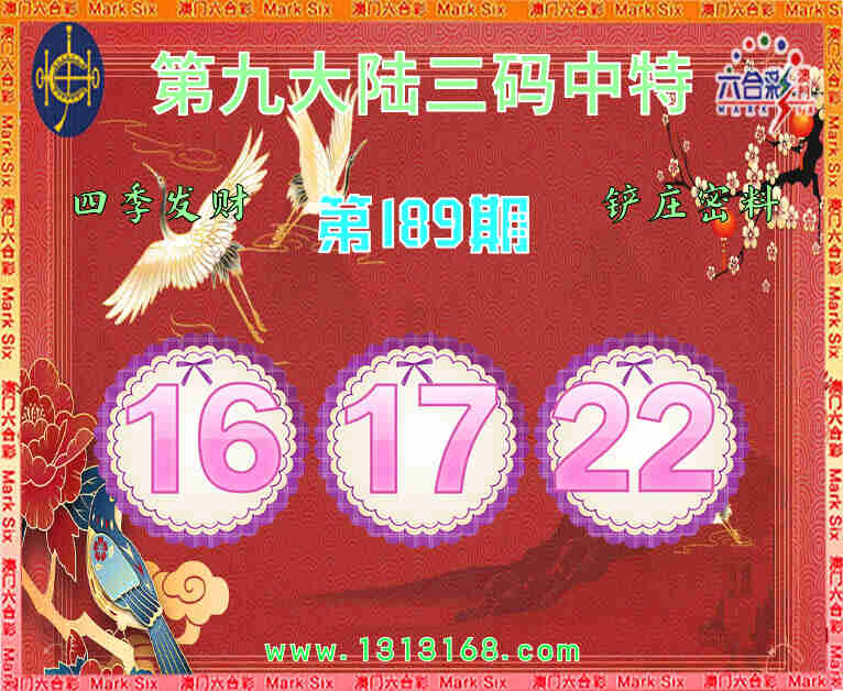 189期:〖第九大陆〗 📙三码中特📙【16.17.22】开:17