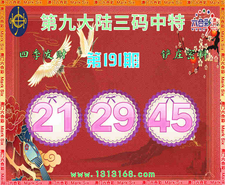 191期:〖第九大陆〗 📙三码中特📙【21.29.45】开:29
