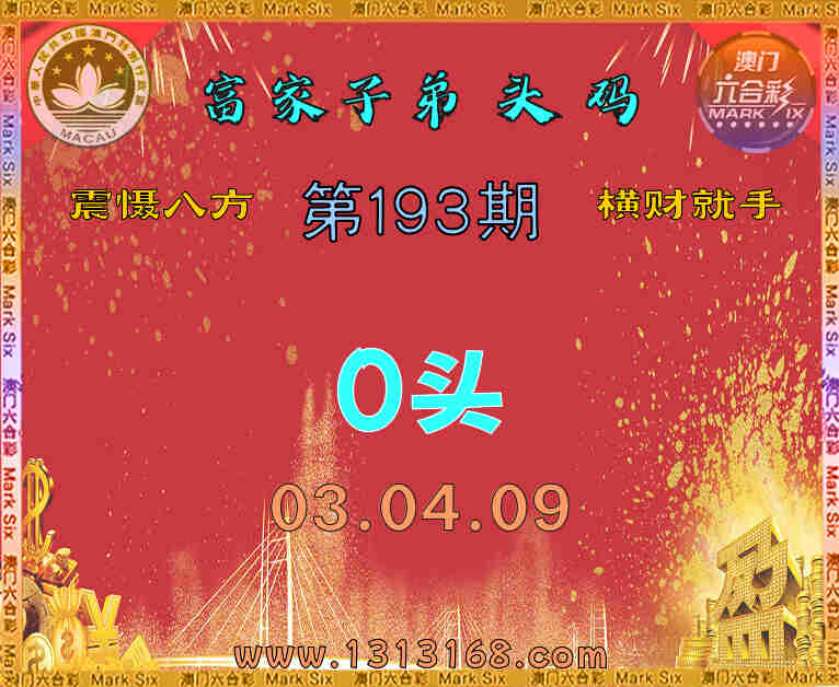193期:〖富家子弟〗①头③码⚽【0头主:03.04.09】开:00准