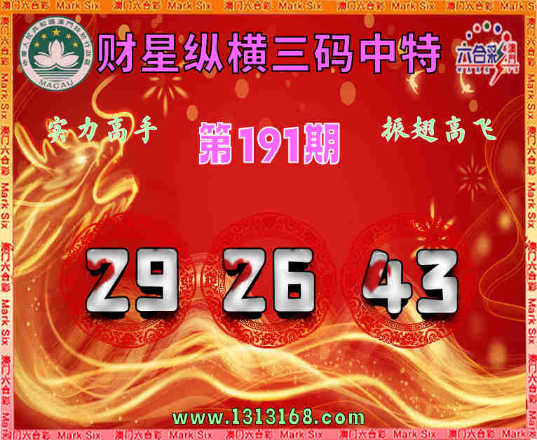 191期:『财星纵横』 🥽三码中特🥽【29.26.43】开:29