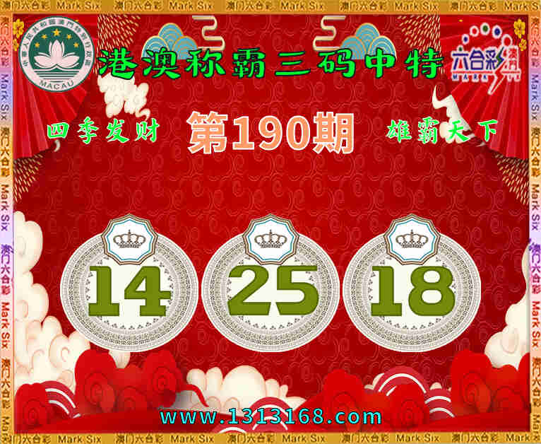 190期:〖港澳称霸〗 😍三码中特😍【14.25.18】开:18