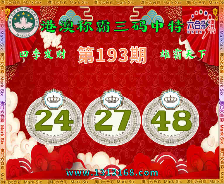 193期:〖港澳称霸〗 😍三码中特😍【24.27.48】开:24