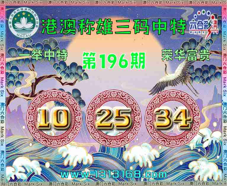 196期:【港澳称雄】三码中特⌚【10.25.34】开:00准