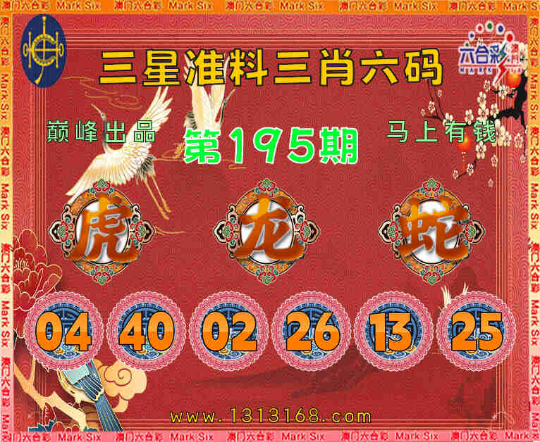 195期:『三星准料』 ♥️三肖六码♥️【虎龙】开:蛇25