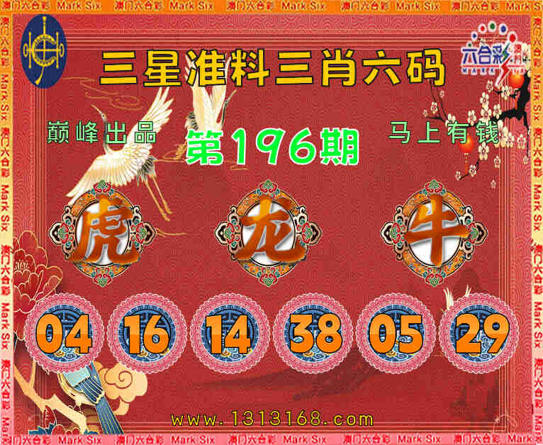 196期:『三星准料』 ♥️三肖六码♥️【虎牛】开:龙14