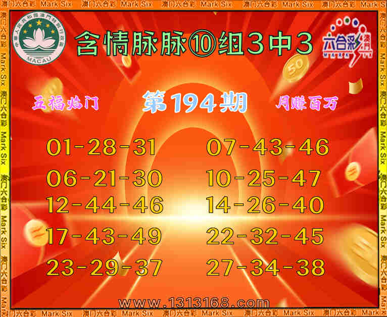 194期:【含情脉脉】 🥧⑩组3中3🥧
