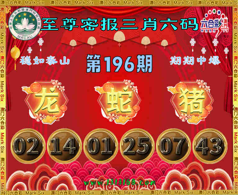 196期:『至尊密报』 🍔三肖六码🍔【蛇猪】开:龙14