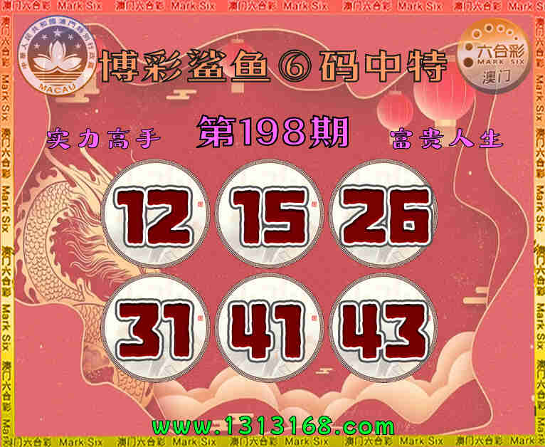 198期:『博彩鲨鱼』 🚡⑥码中特🚡【12.15.26.31.41.43】开:43