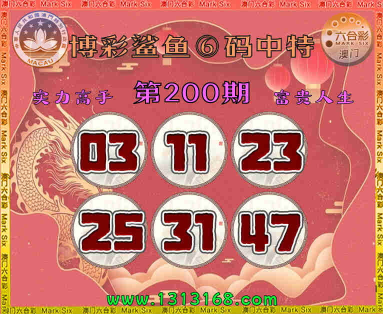 200期:『博彩鲨鱼』 🚡⑥码中特🚡【03.11.23.25.31.47】开:47