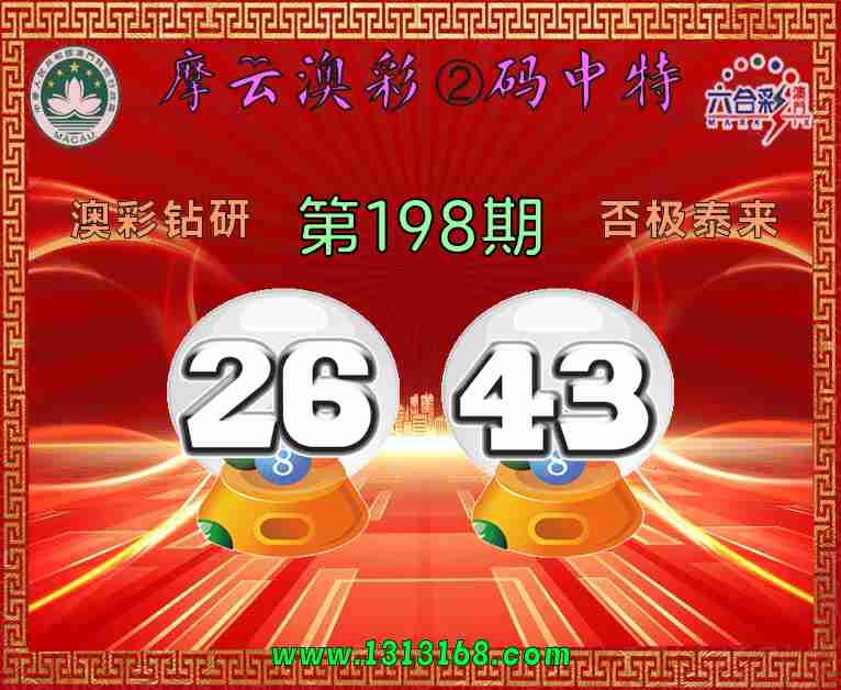 198期:《摩云澳彩》 🍏②码中特🍏【26.43】开:43