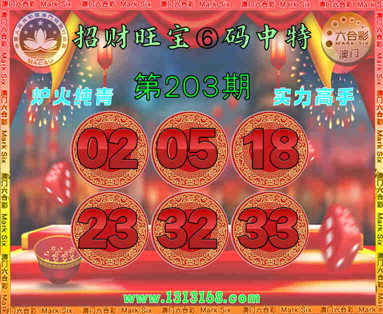 203期: 🥠《招财旺宝》 🥠⑥码中特🥠【02.05.18.23.32.33】开:18