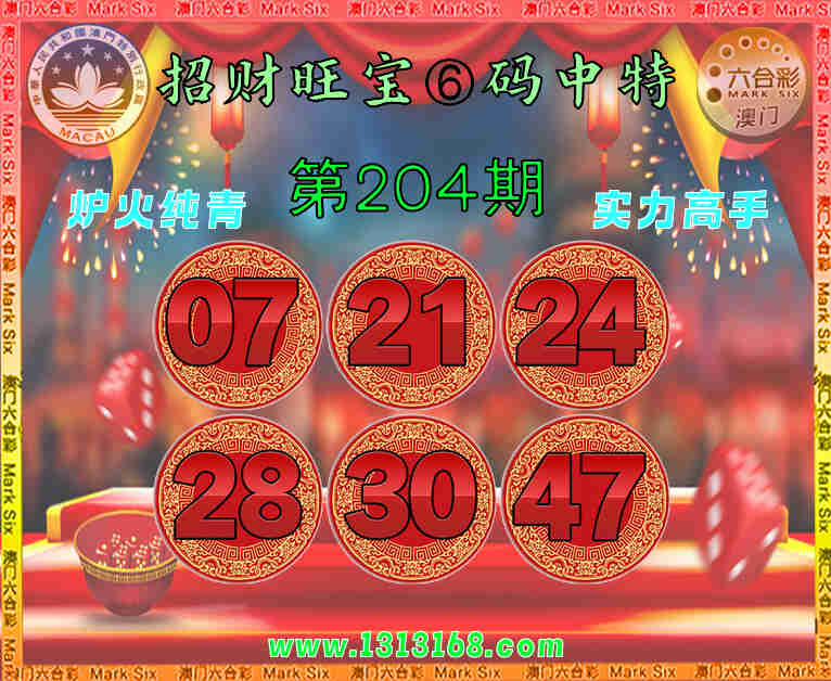 204期: 🥠《招财旺宝》 🥠⑥码中特🥠【07.21.24.28.30.47】开:30