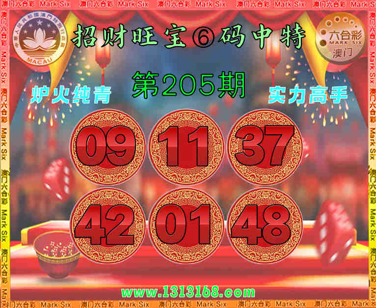 205期: 🥠《招财旺宝》 🥠⑥码中特🥠【09.11.37.42.01.48】开:01