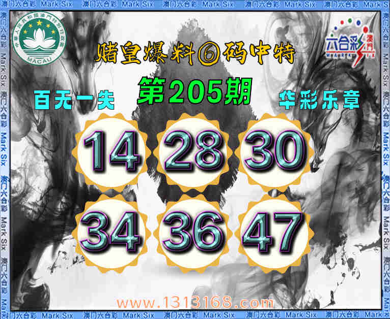 205期:【赌皇爆料】 👛⑥码中特👛【14.28.30.34.36.47】开:01