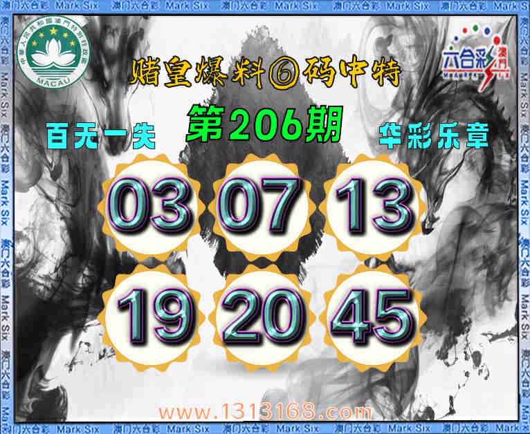 206期:【赌皇爆料】 👛⑥码中特👛【03.07.13.19.20.45】开:00准