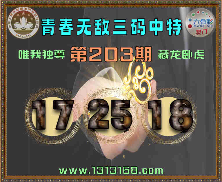 203期: 青春无敌 🗡三码中特🗡【17.25.18】开:18