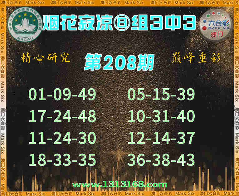 208期:【烟花寂凉】 🎯⑧组3中3🎯
