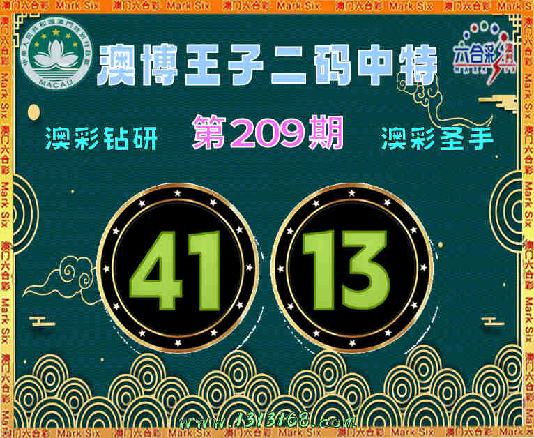 209期:【澳博王子】 🤩二码中特🤩【41.13】开:13