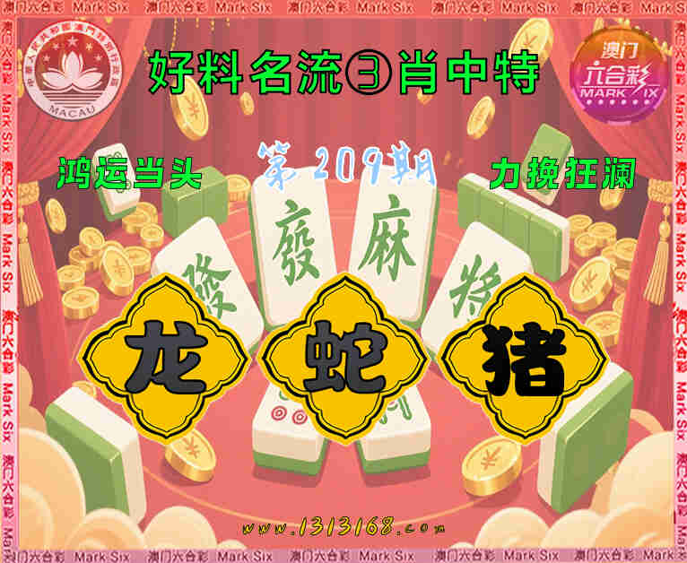 209期: ♣️『好料名流』 ♣️③肖中特♣️【龙..猪】开:蛇13
