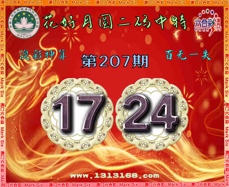 207期:【花好月圆】  ♣️二码中特 ♣️【17.24】开:24